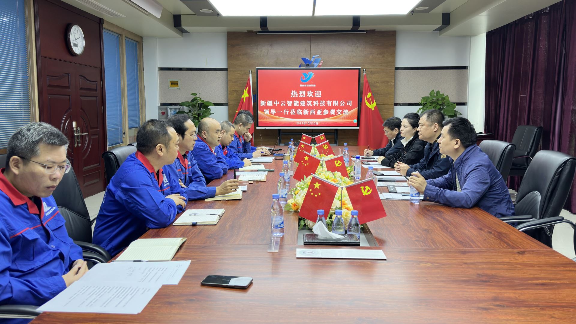 10月20日上午,新疆中云智能建筑科技有限公司总经理刘帅、重庆太湖锅炉股份有限公司董事长李正斌一行莅临新西亚铝业集团考察交流。中机中联新技术与产业规划研究院院长杨芳乙、重庆大学教授林真国作为特邀嘉宾出席。各方围绕太空舱战略联盟构建、铝深加工产业融合、文旅及城市更新领域合作等核心议题举行深度座谈,共同擘画跨区域、全产业链协同发展的宏伟蓝图。