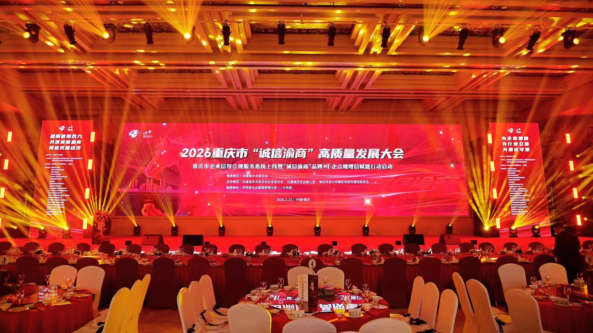 2月25日,重庆市“诚信渝商”高质量发展大会召开。本次大会由重庆市工商联(总商会)、民建重庆市委员会指导,民建重庆市委员会企业委员会、民建重庆市直属工委及重庆市非公有制企业信用建设促进会联合主办,汇聚了政、商、学各界精英。重庆市人民政府原副市长余远牧,重庆市工商联副主席王进,民建中央委员、重庆市委会副主委辛清泉等领导出席,与千余名企业家代表共话诚信建设。新西亚铝业集团作为行业优秀代表受邀参会,集团董事长、总经理刘斌出席大会。